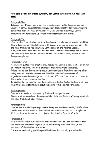 Evening of a hot day started the little wind to moving among the leaves. The more the world of men tries to attain or possess the world of mice, the more they harm it and consequently, the more they lose it. Of mice and men have written by john steinbeck was published in 1937 and is viewed as the author's first significant accomplishment. However, the moment foreshadows another scene: Lennie rolled off the bunk and stood up, and the two of them started for the door.