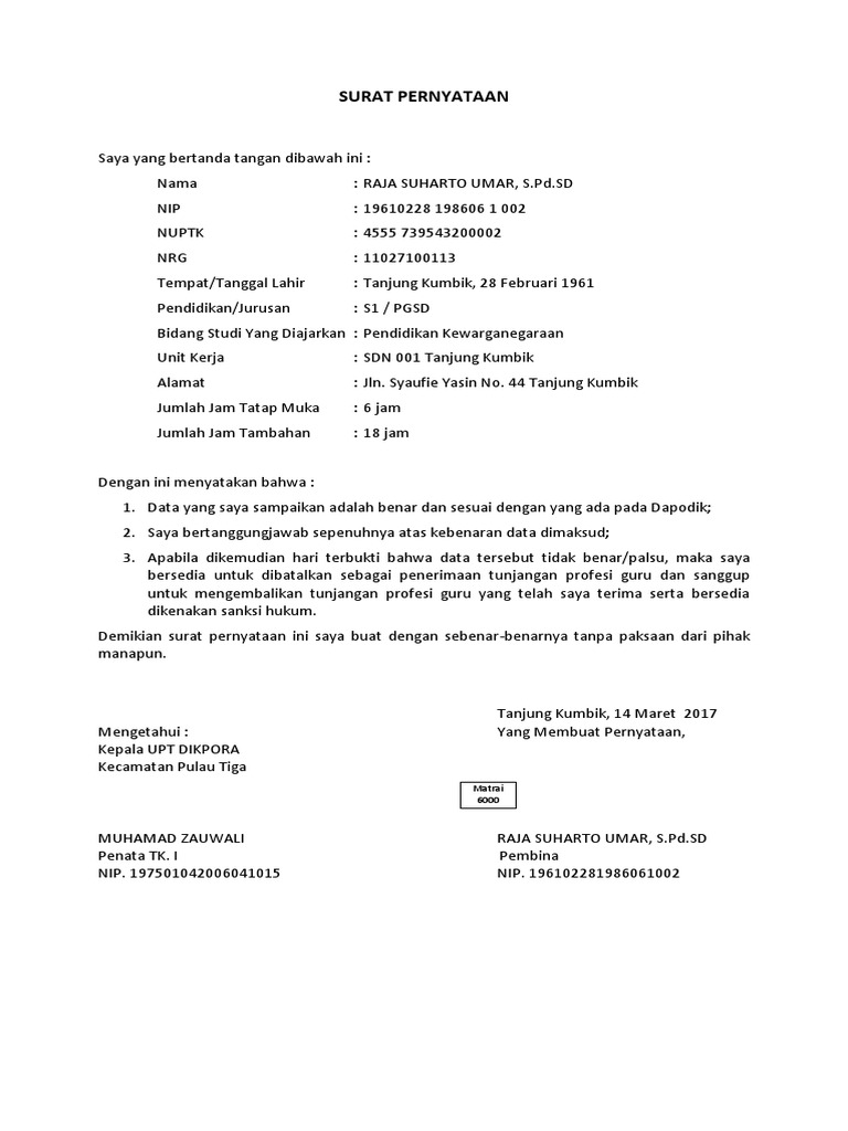 Berisi contoh surat pernyataan lengkap dengan formatnya.